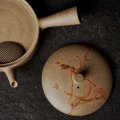 Das feine Mogake-Dekor entsteht durch das Umwickeln mit Meeresalgen, die beim Brennvorgang einzigartige, faserartige Muster hinterlassen. Mit harmonischer Linienführung, feinem Keramiksieb und ergonomischem Henkel bietet diese Teekanne nicht nur handwerkliche Perfektion, sondern auch ein stilles Statement japanischer Ästhetik.