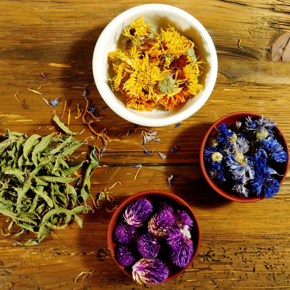 | Verbene-Blüten-Mix 40g Drei Powerblumen im Mix - Kornblume, Ringelblume und echter Kugelamaranth - abgerundet mit erfrischender Lemonverbene. Geschmacksbild: Herrlich blumiges Aroma mit feinen Zitrusnoten, spritzig und erfrischend. | |